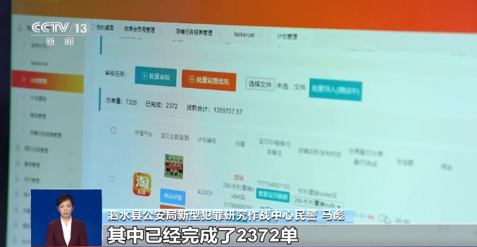 泗水县公安局新型犯罪研究作战中心民警 马彪:接市局网安支队的线索之后,立马对花花电商后台进行了勘验,通过勘验发现4月3日0时起,截至11时,已经有7326单的总单量,其中已经完成了2372单,刷单的总金额达到了135万元。